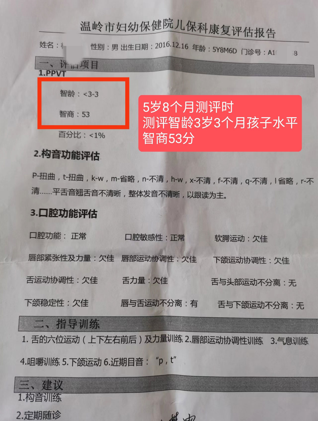一直到他将近3岁的时候,各方面和别的孩子差别越来越明显,别的孩子都会说十几个字的长句子了,我儿子说3-4个字的句子都很勉强,而且压根教不会,指令听不懂,不知道我和爸爸想让他干什么,最后去检查人家说是发育迟缓,而且现在孩子也就相当于1岁孩子的智力水平,我做早教工作这么多年,接受过系统的培训,拥有着丰富的育儿经验,但是教了孩子那么多个月,不但没有进步反而耽误了孩子。